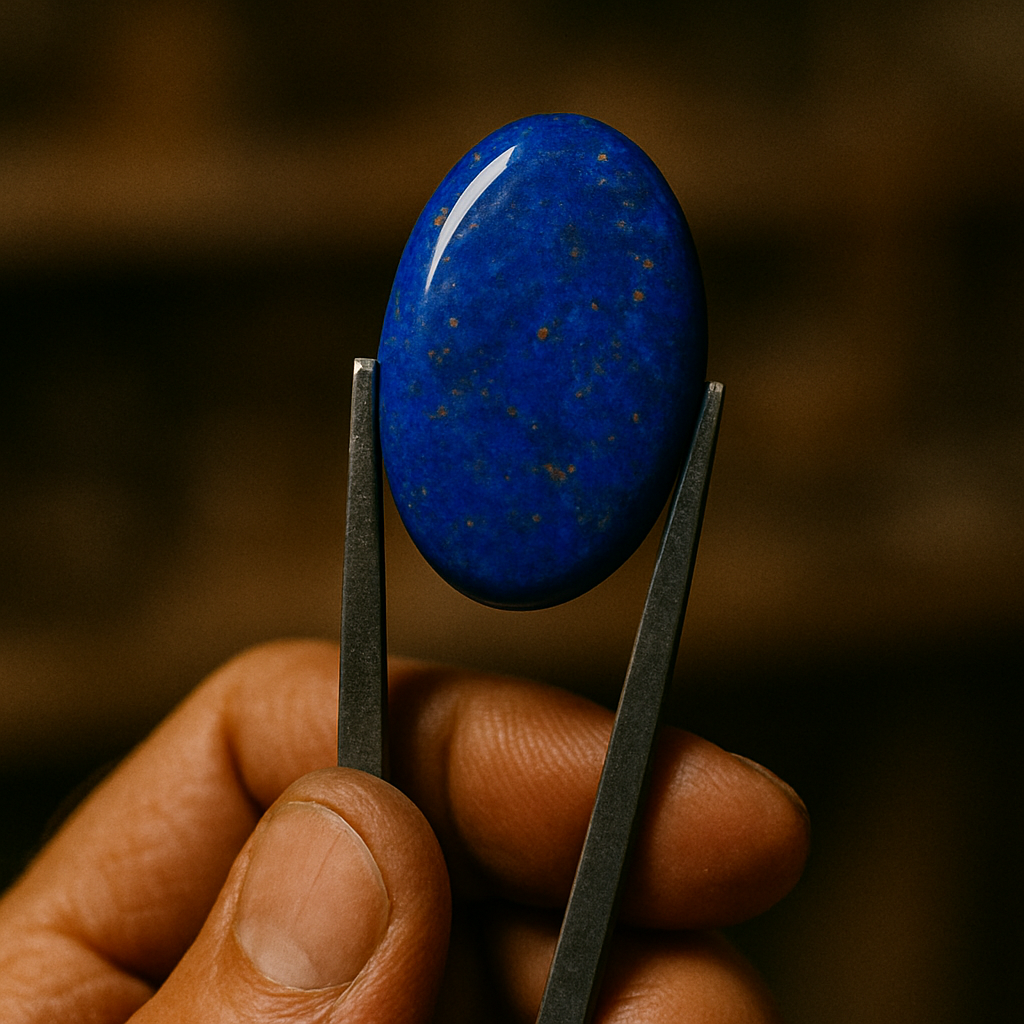 D’un bleu royal ponctué d’éclats dorés, le lapis lazuli est la pierre des rois et des rêveurs, symbole de sagesse et d’infini.